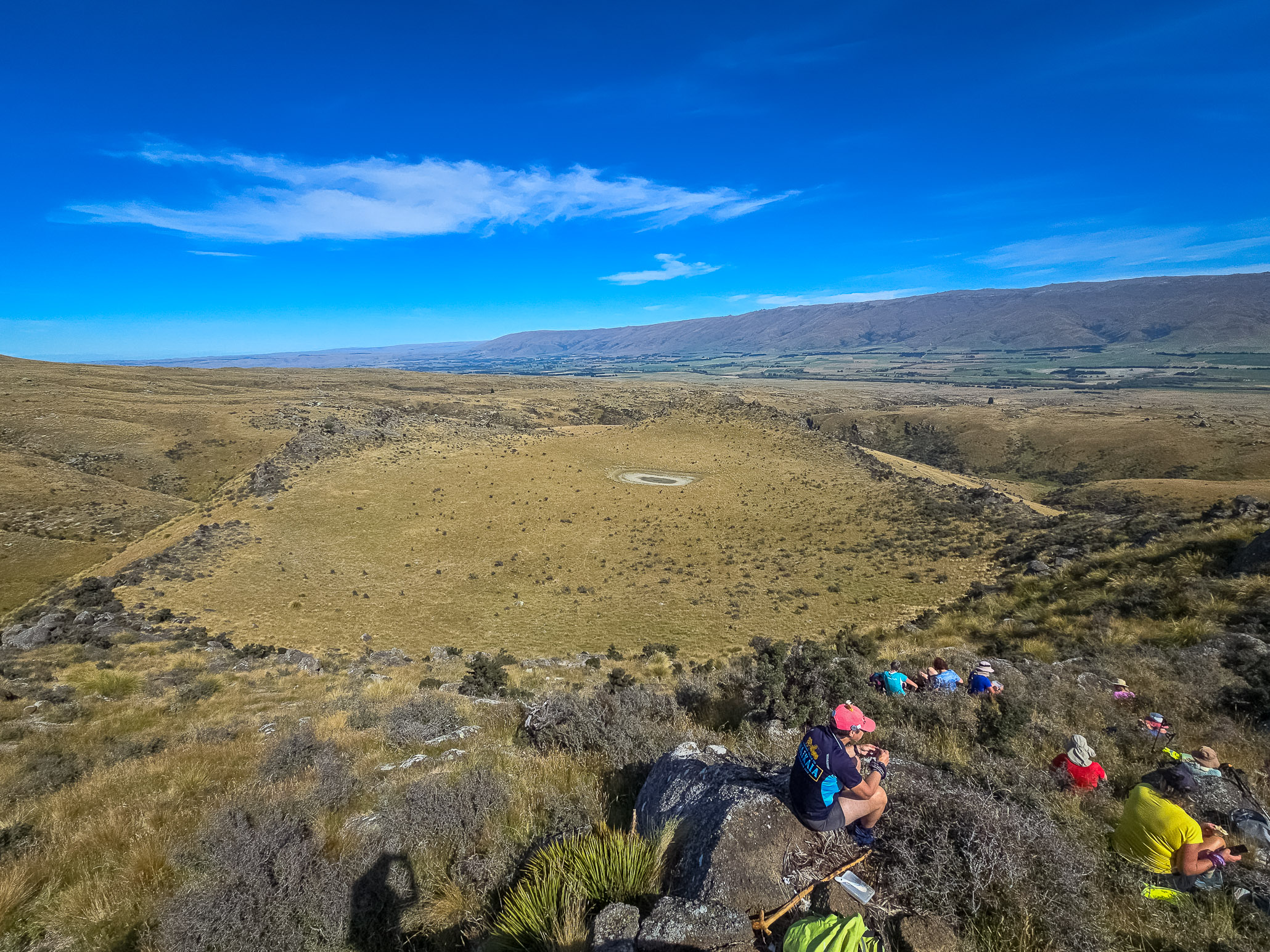 Lunch was dropped off to us at the top along with water and the walkers that decided to skip the hill. We wondered on a little bit longer with Terry (brother and Cavalcade organizer) showing us the way. The only trouble following Terry is he is a mountain runner. He did slow the pace for us thank goodness. Lunch, for those happy to climb, was on the edge of a crater. Who knew such an amazing cater was up here, Just an incredible landscape. While up there mum told us all about the history of our family that came here 60 years ago to start a transport before heading to Cromwell to farm.