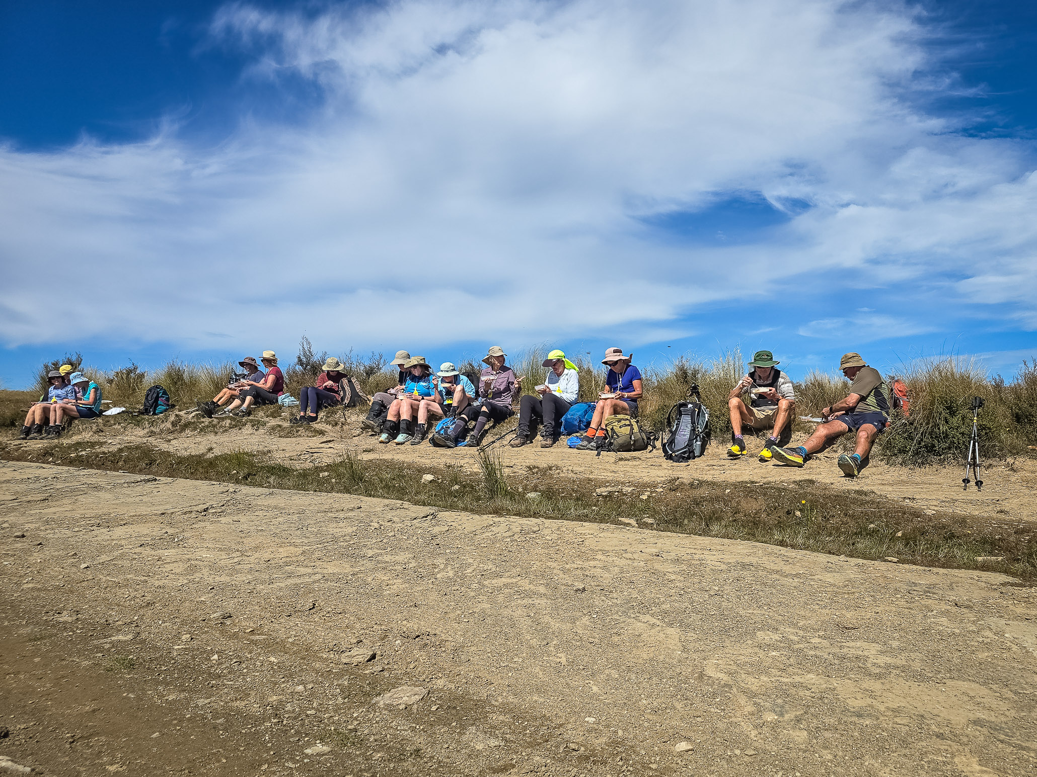 Another 7:30am start for breakfast and to get us out before the heat. We started with a ride to the beginning instead of walking along a sealed road. We started at the obvious landmark of one tree hill – the sapling was planted after the first world war and is quite the statement now. This was another farmer who led the walk and she shared lots of interesting information about the area. The commitment from the local community to this event is huge and they are hoping to cover over a local swimming pool with the money made from visitors to the area.