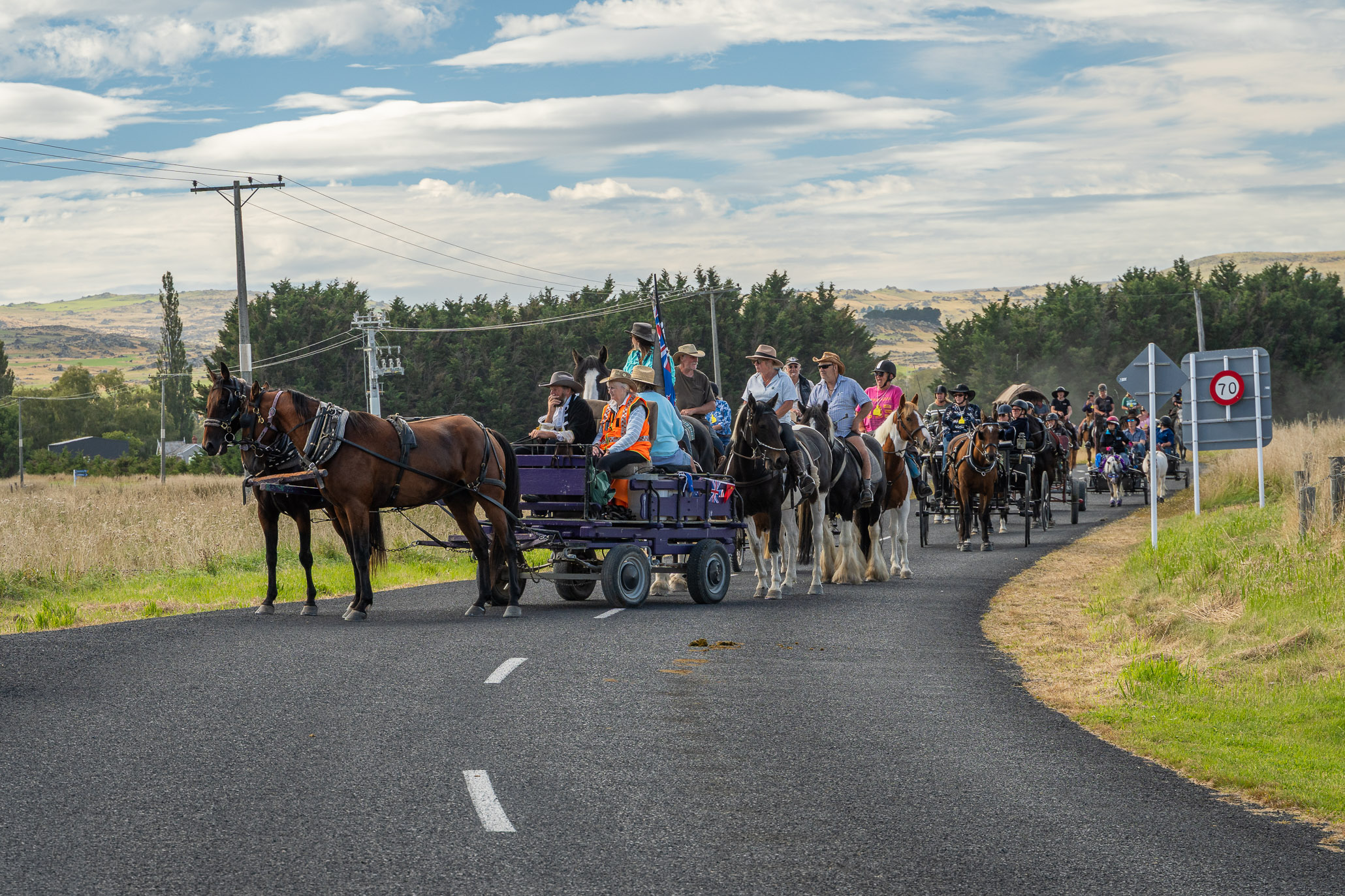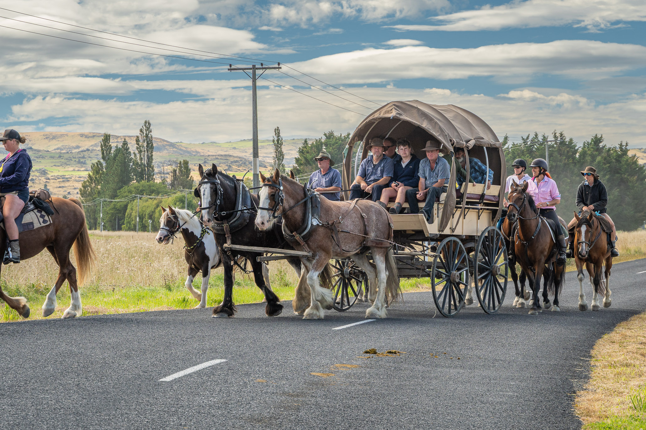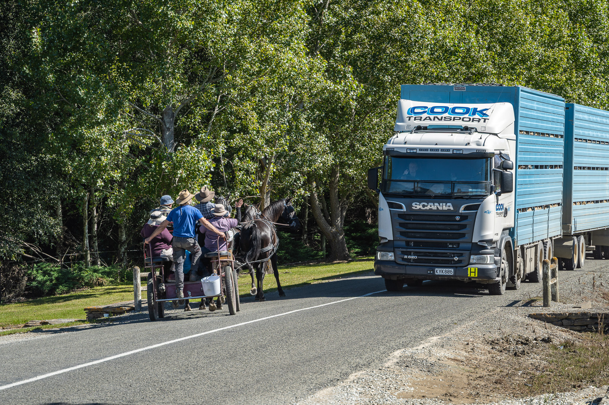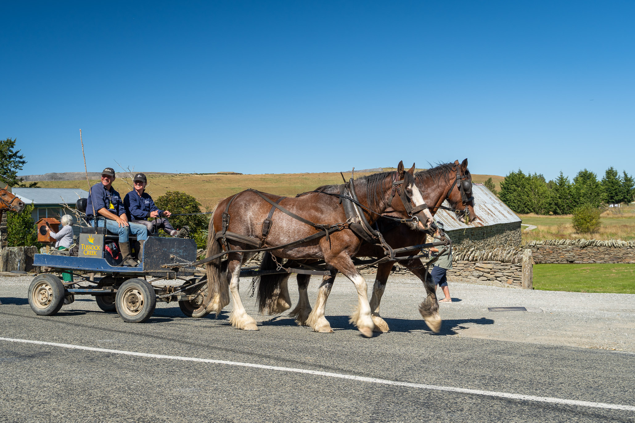 We were treated to the wagon trail coming through. That was just the perfect start to the Cavalcade. The horses are the stars, and the wagons are the super stars. Macraes is a beautiful place to explore with some good walks and history. A bonus was seeing Cooks Transport come through, this was who Dad sold his transport to 50 years ago – its still the same colours but a lot bigger.