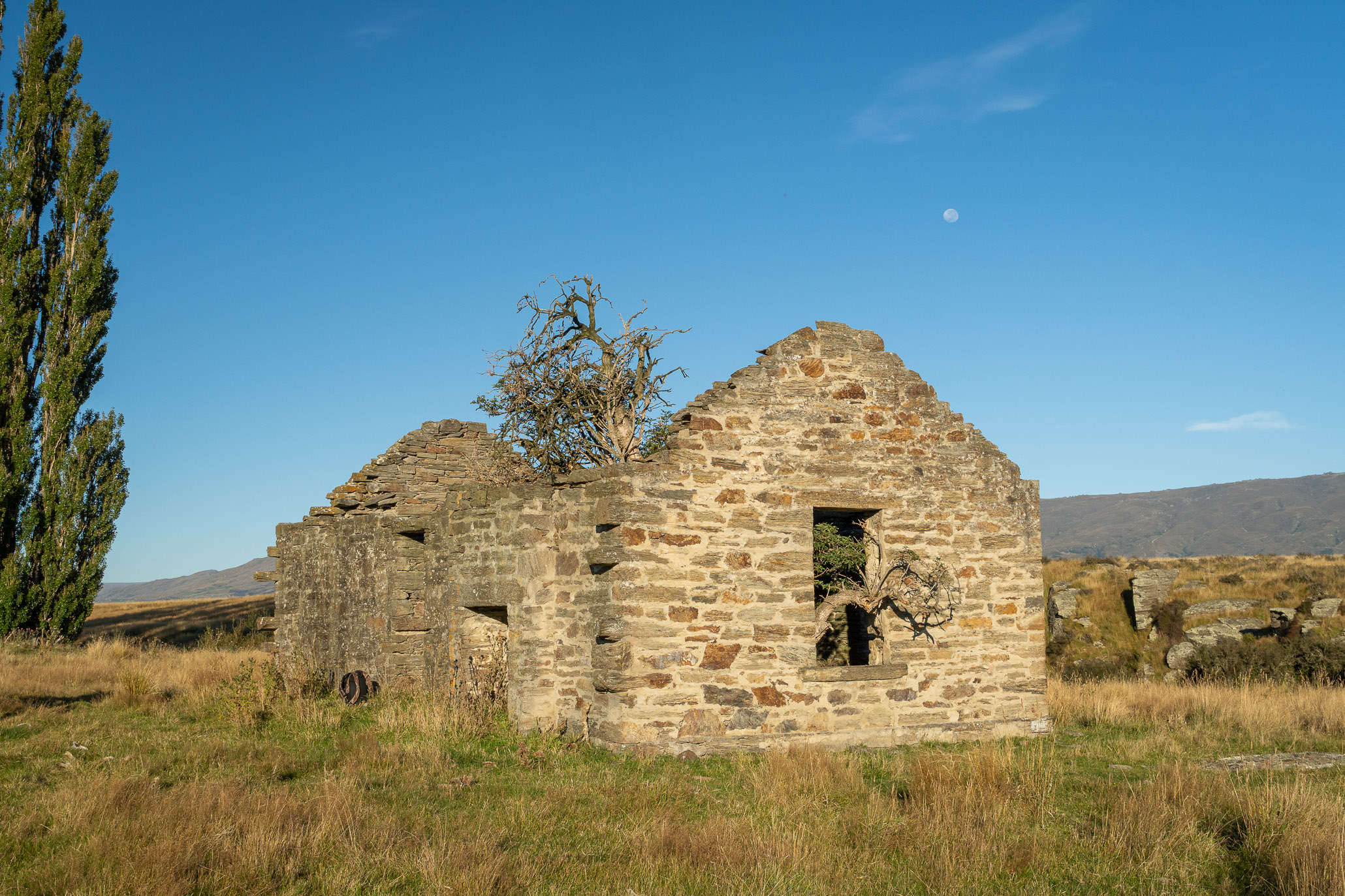 They transported us to Macraes Flat for the night in the local hall. After a few set up their tents, we went to explore the old town (about 10 buildings).