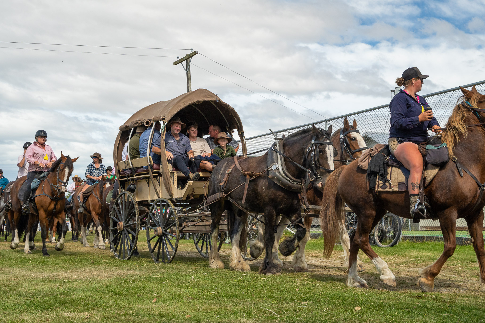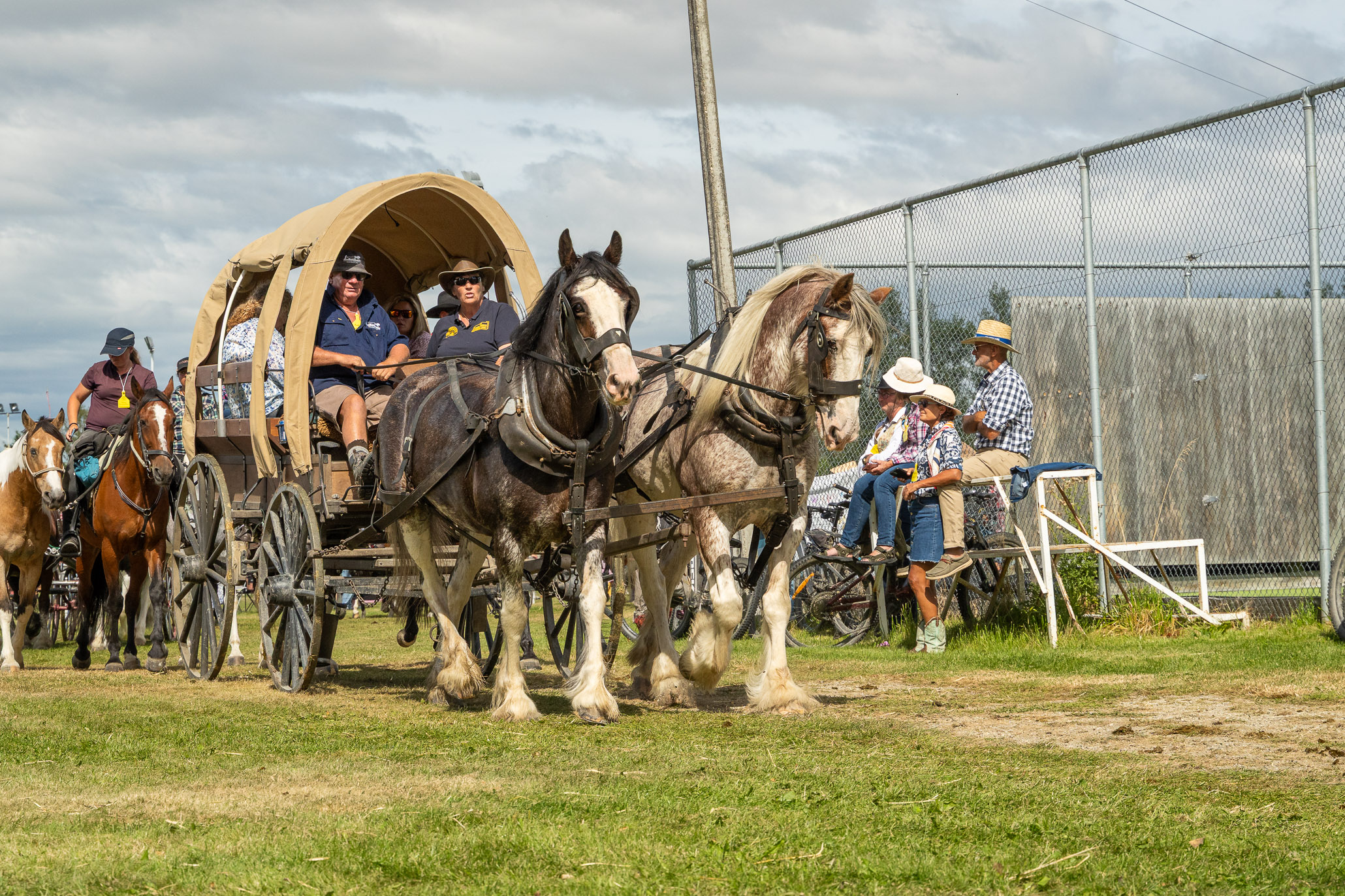 We headed off through town to join the parade or walkers, runners, trampers, bikers, riders and wagons. It was huge fun with everyone lining the streets and waving and calling to people they new, you really felt part of something much bigger than just our amazing walk. The parade finishes with a full circuit of the show grounds. Luckily, we were at the front of the parade (to avoid horse poop!) so we got to watch all the horses come through at the end.