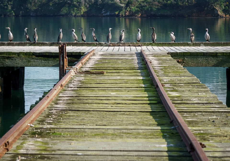 Shags on the wharf, Akaroa